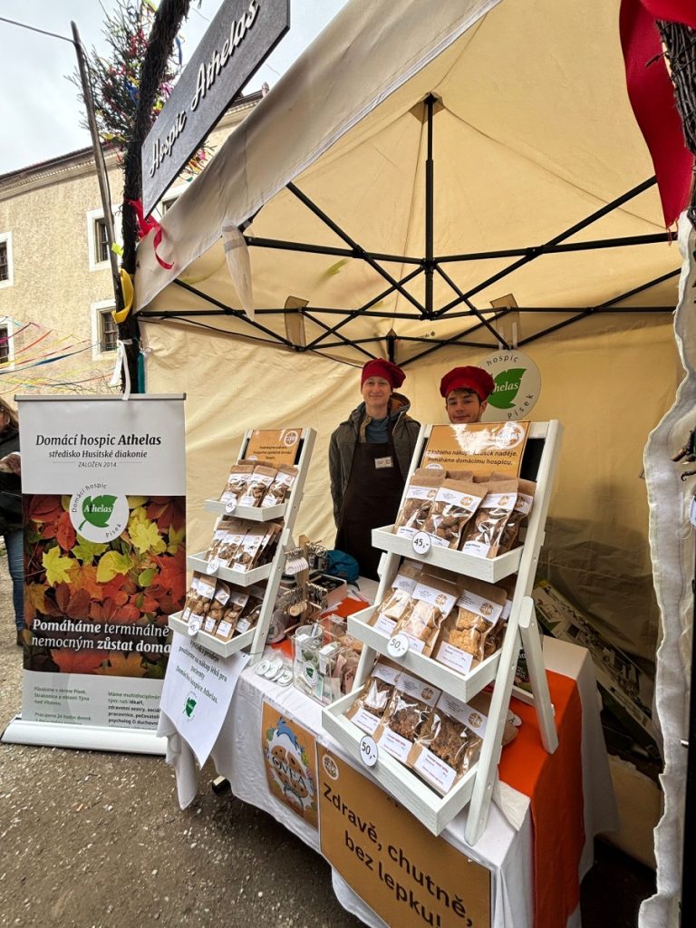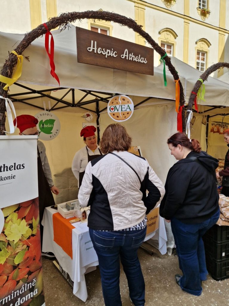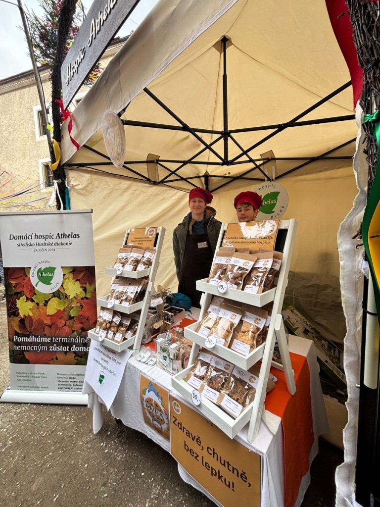 O bezlepkové pečivo z dílny OVEA byl mezi návštěvníky velký zájem. Díky štědrosti všech, kteří přispěli do kasičky, se podařilo vybrat krásnou částku na podporu hospice Athelas, který poskytuje péči pacientům v terminálním stádiu onemocnění.