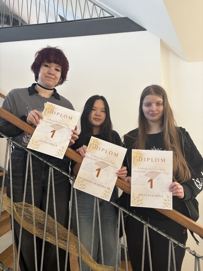 Již tradičně se konala školní olympiáda v anglickém jazyce. V prosinci 2025 byli nominováni nejlepší studenti z druhých a třetích ročníků, kteří prošli náročným testem, kde museli prokázat vysokou úroveň čtecích, gramatických i poslechových dovedností. Pět nejlepších studentek bylo pozváno do ústního kola, které se konalo v lednu 2026. Kandidátky si při předem nepřipraveném projevu vedly výborně. Z výsledků obou kol vybrala komise nejlepší trojici. Tři nejlepší studentky Denisa Vu, Aneta Vlachová a Liliana Hollá se umístily na děleném prvním místě. Jejich výsledky byly naprosto vyrovnané.
