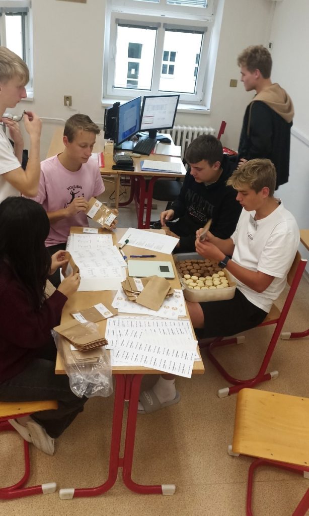 V pátek 10. 10. 2025 jsme se dlouho do odpoledních hodin připravovali na náš první prodej ovesného sortimentu. Lepili jsme etikety, připravovali balíčky a ladili každý detail.