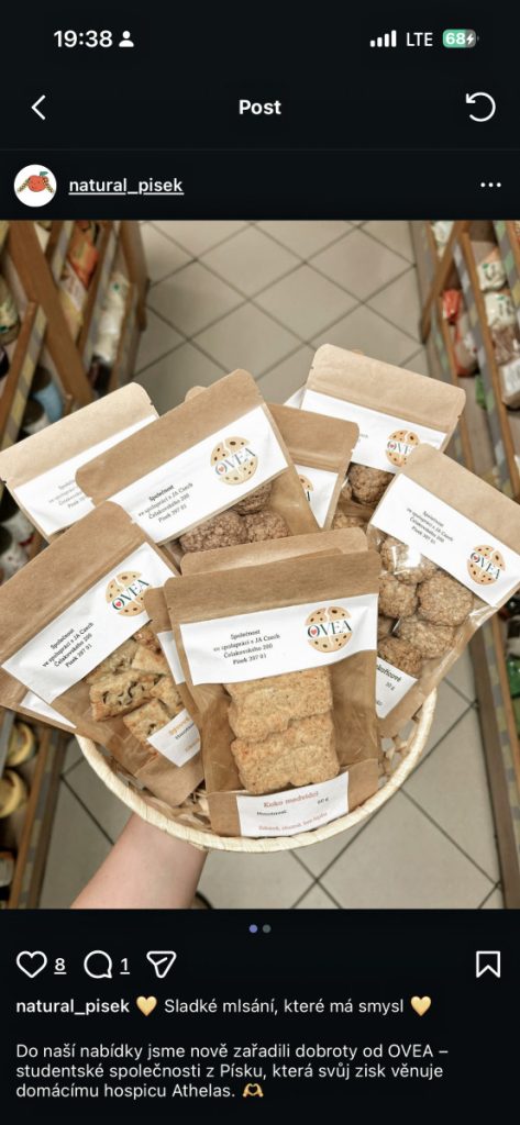 Velkého úspěchu dosáhla studentská společnost OVEA, která se svými bezlepkovými sušenkami nově vstoupila do kamenných prodejen s regionálními a zdravými potravinami. Její výrobky si nyní mohou zákazníci zakoupit v prodejně Natural v Písku a také v obchodě Violka v Milevsku.